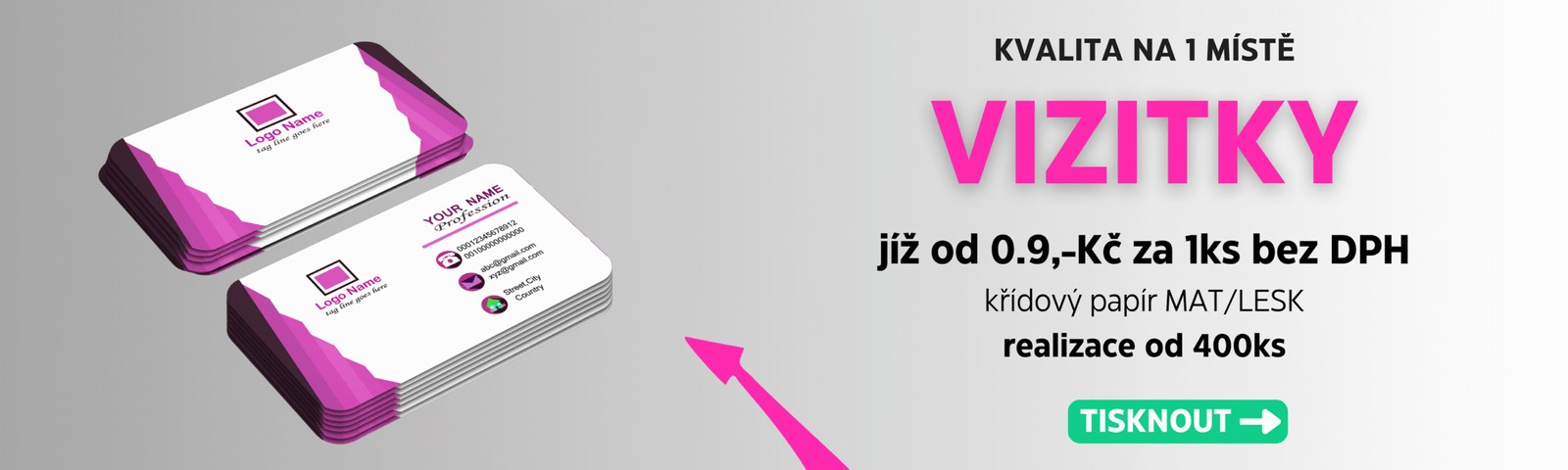 Vizitky, bannery, letáky, bloky i plakáty. Rychle. Kvalitně. Za férovou cenu.