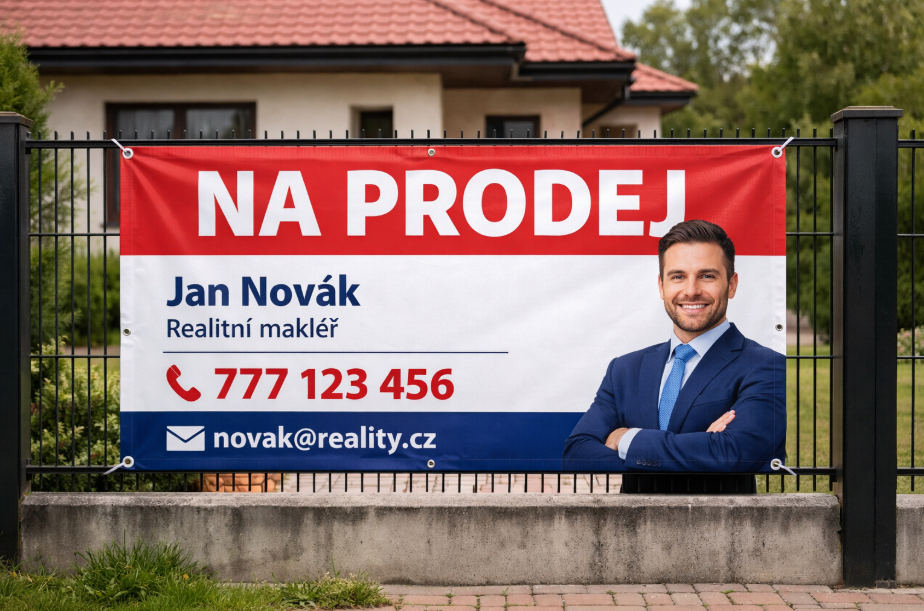 Naše PVC bannery jsou navržené přesně pro realitní makléře, kteří chtějí být vidět – a to dlouhodobě.